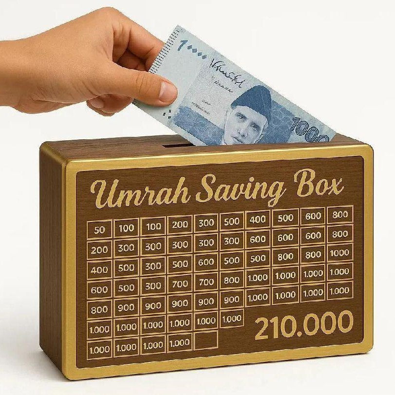 Umrah Saving Box – Wooden Islamic Money Saving Box for 280 Days