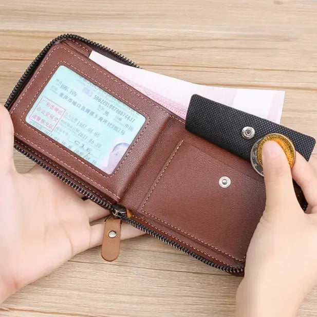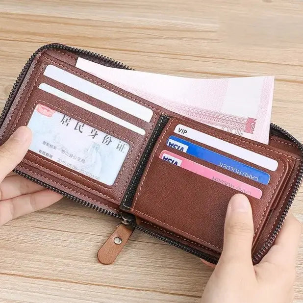 Wallet for Men – Leather RFID Blocking Bifold Round Zipper Short Wallet