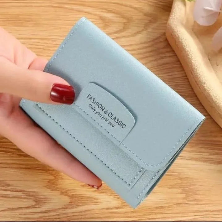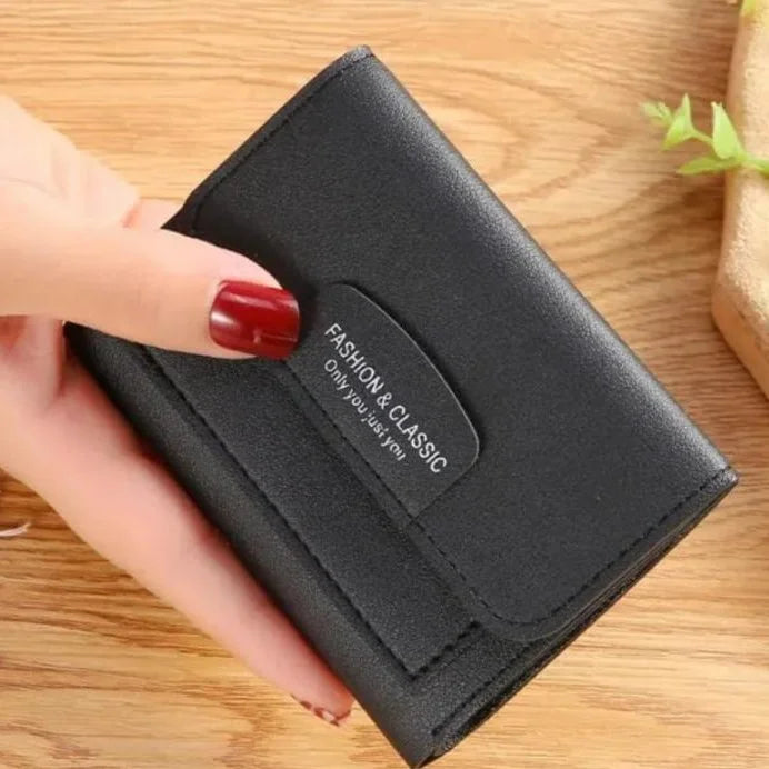 Premium small trifold wallet crafted from high-quality PU leather. Elegant, compact, and functional design perfect for women on-the-go, offering secure storage for cards, cash, and coins.