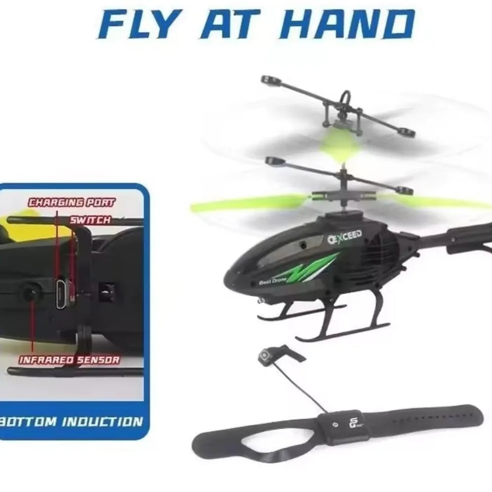 2-in-1 Induction RC Helicopter with Gesture Watch β Impact Resistant with LED Lights