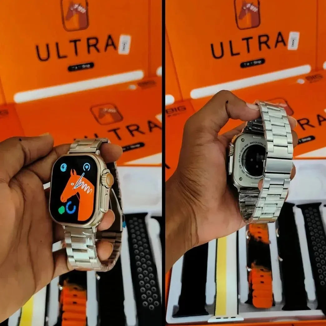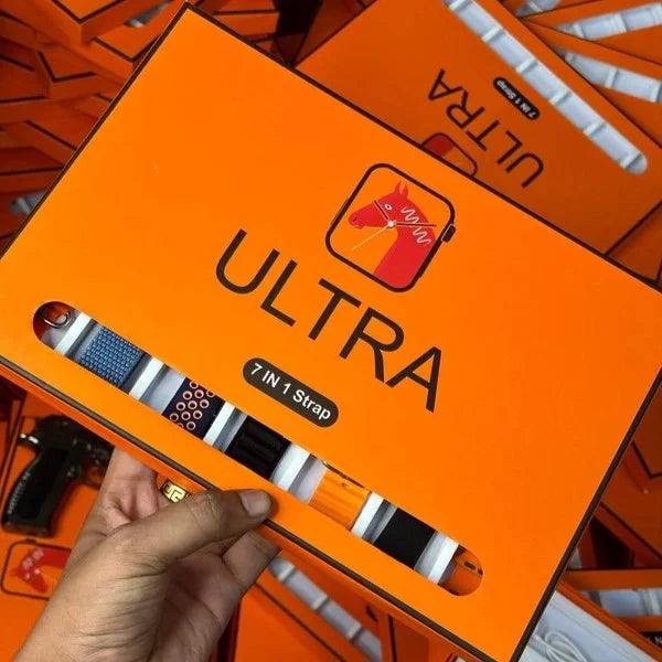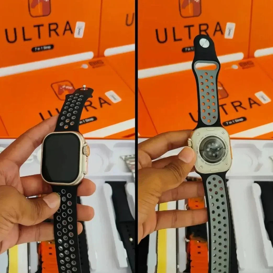Upgrade your wrist game with the 7-in-1 Strap Ultra Smart Watch. Featuring a large 2.1-inch Full HD IPS display, wireless charging, NFC support, and seven interchangeable straps, this smartwatch combines modern design, comprehensive health tracking, and seamless connectivity for daily use or fitness activities.