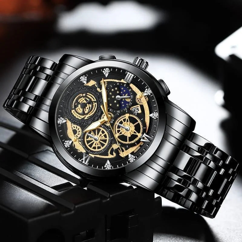 LIGE Men’s Sports Quartz Watch – Full Steel Chronograph