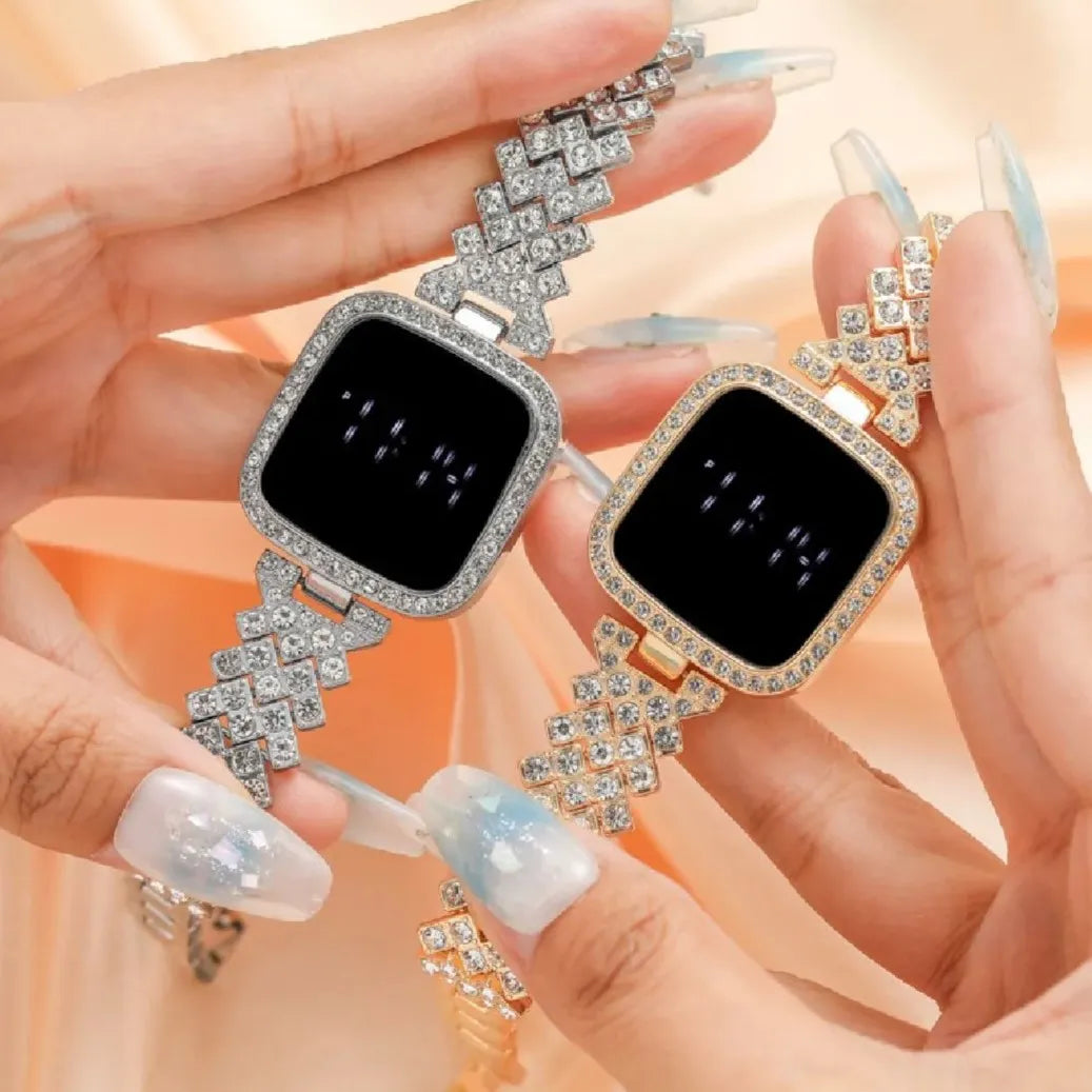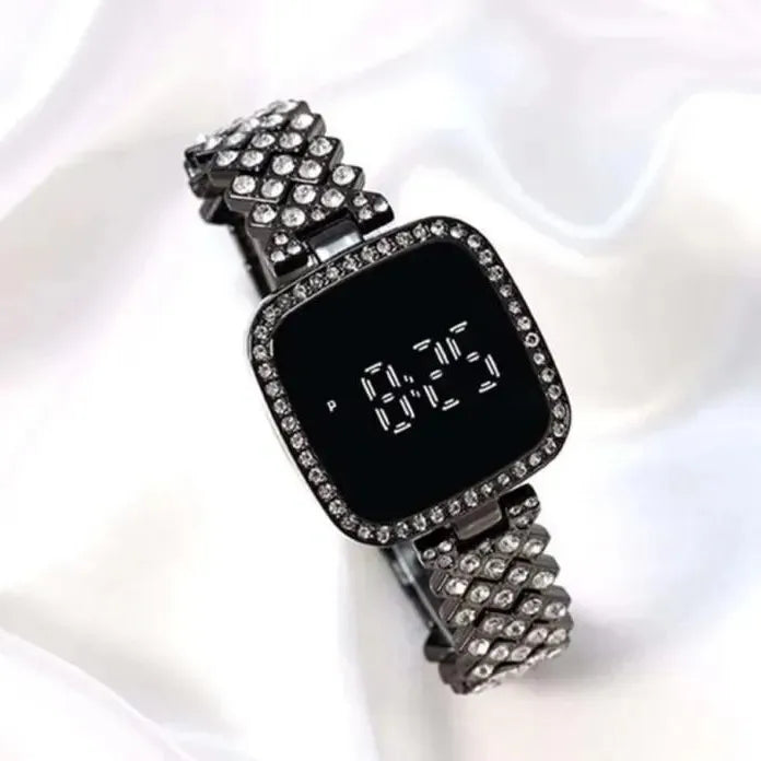 Elevate your style with this Ladies Luxury Diamond Watch. Featuring a sleek steel band, sparkling diamond touch screen, and LED electronic display, this watch combines elegance, durability, and modern functionality—perfect for everyday wear or special occasions.
