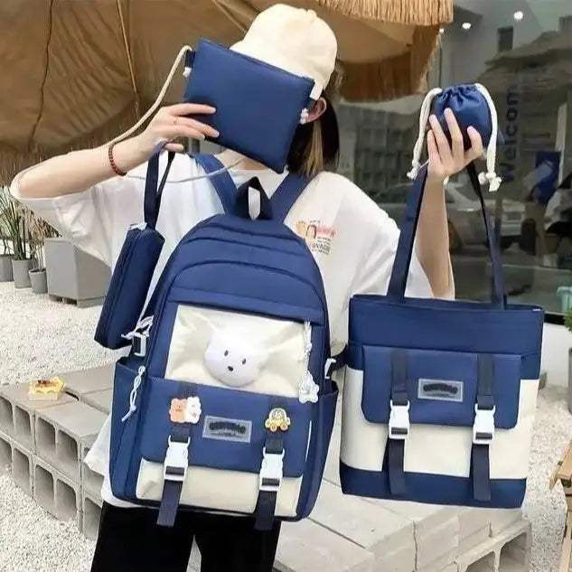 4-Piece Multipurpose Nylon Backpack Set (Girls’ Trendy College & School Set)
