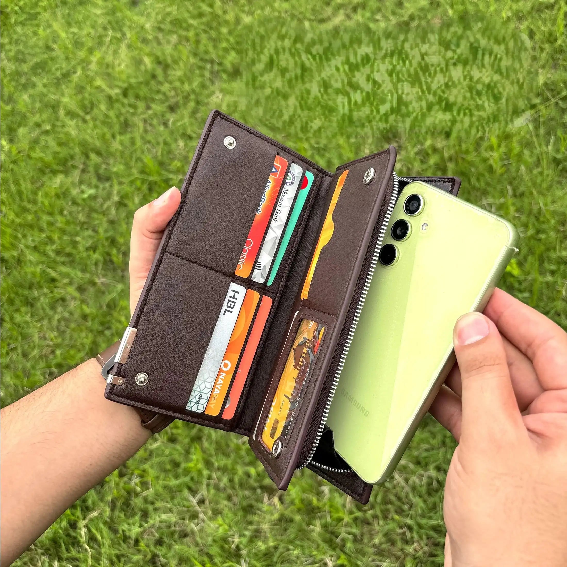 Premium quality PU leather wallet with stylish design, spacious compartments, and secure zipper closure. Perfect for organizing cash, cards, and essentials, suitable for both business and casual use.